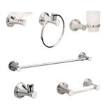 Disfruta del diseño innovador y moderno que los accesorios de este kit le dan tu baño.
